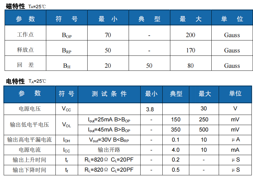 推薦型號: HS43F單極性霍爾效應開關