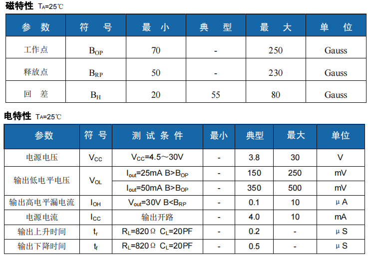 推薦型號: HS3144E/HS43F低電壓啟動單極性霍爾IC