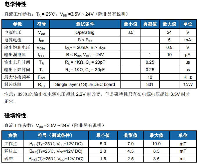推薦型號: HS258/HS264單極性高靈敏度霍爾器件