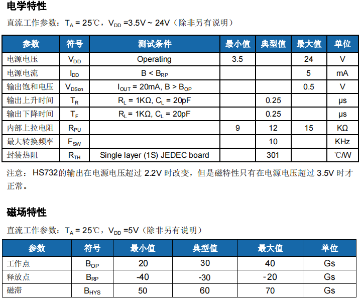 HS732是一款高磁靈敏度的霍爾效應(yīng)傳感器,基于混合信號CMOS工藝。這款多功能的鎖存器適合大多數(shù)的應(yīng)用需求。