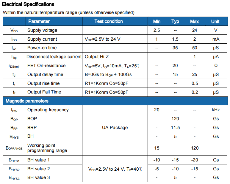 1. Programmable digital unipolar Hall sensor