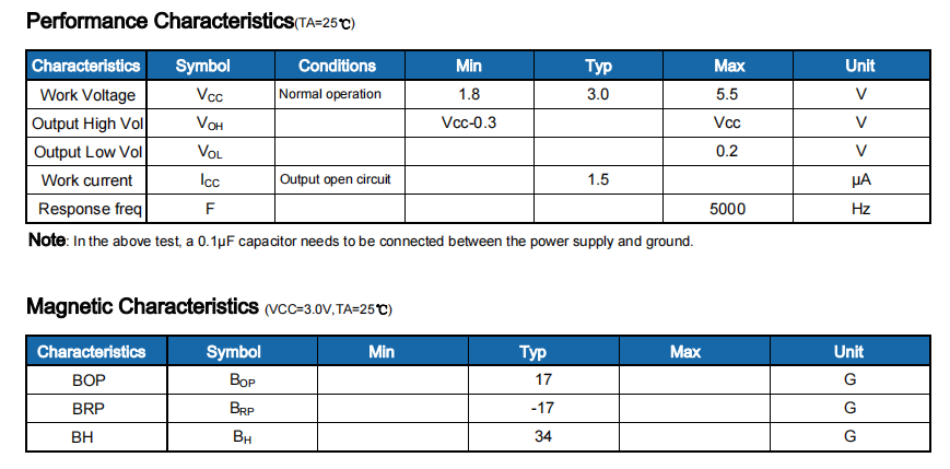 TMR1202H is an ideal choice for many low power and high performance applications with low voltage operation, 1 micro ampere supply current, high response frequency, wide operating temperature range and excellent anti-external magnetic interference characteristics.