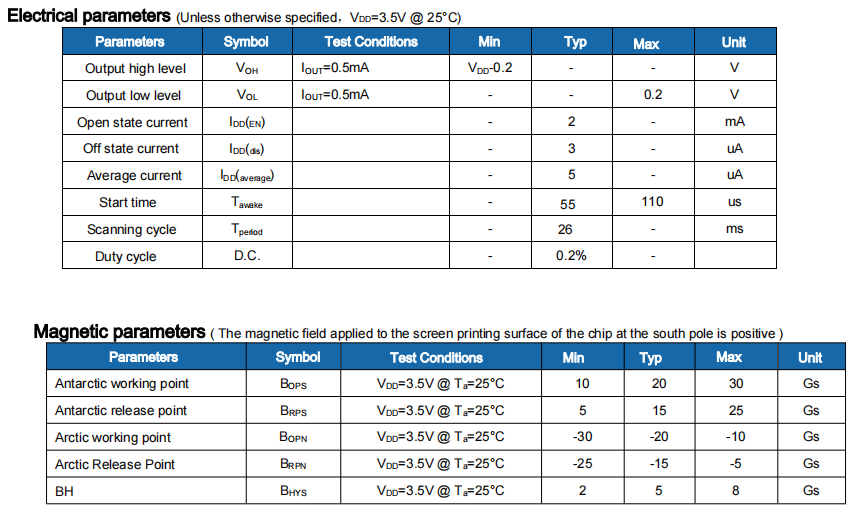 HS627 is a micro-power, high-sensitivity omnipolar Hall switch sensor with latch output, which can directly replace the traditional reed switch. It is particularly suitable for portable electronic products that use battery power, such as mobile phones, cordless phones, notebook computers, PDAs, etc.