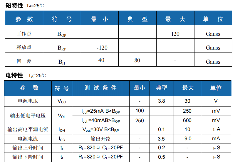 它是一種雙磁極工作的磁敏電路,適合于矩形或者柱形磁體下工作。