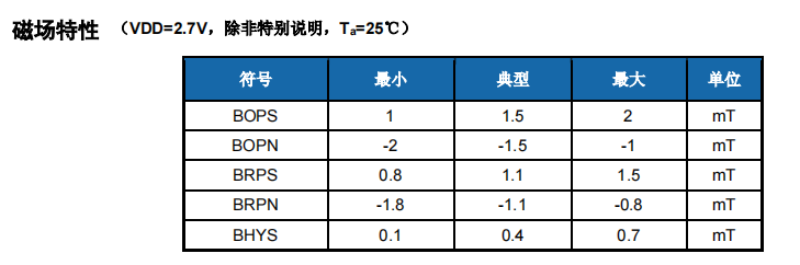 HS4915的輸出晶體管在面向封裝標(biāo)示一面存在一定強(qiáng)南極或北極磁場(chǎng)時(shí)被鎖定在開(kāi)狀態(tài),而在無(wú)磁場(chǎng)時(shí)鎖定在關(guān)狀態(tài)。