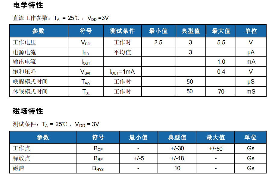 同樣通過這個(gè)機(jī)制,芯片被周期性的“喚醒”并且根據(jù)預(yù)定好的磁場強(qiáng)度閾值檢測外界穿過霍爾器件磁場強(qiáng)度的大小。